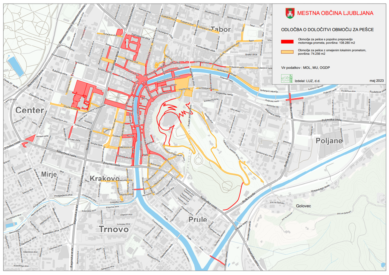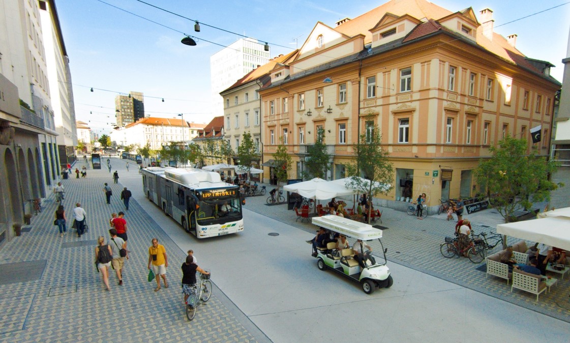 Jedan od prioriteta je širenje pješačkih zona u centru, ali i izvan centra grada. Posljednjih 15-ak godina Ljubljana sustavno širi svoje pješačke zone tako da one danas zauzimaju površinu veću od 18 Ha. Neki od projekata širenja zona bili su financirani iz EU fondova.